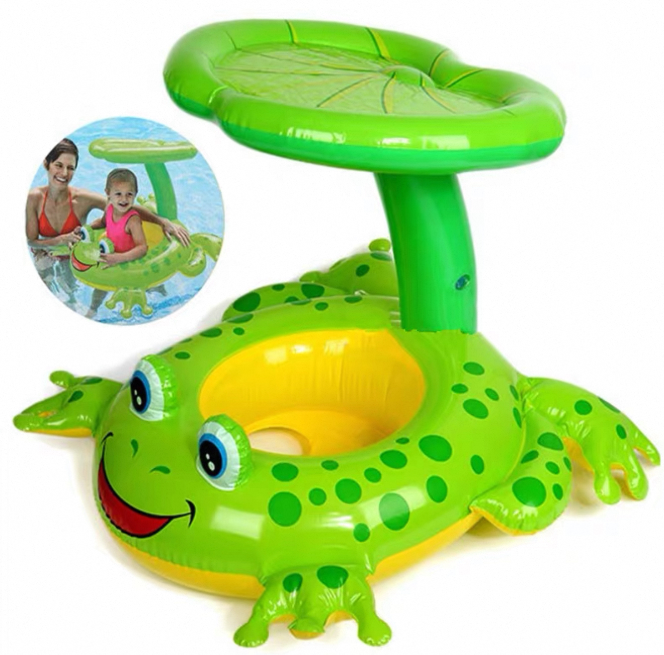 salvavida de rana con tapa sol para bebés
